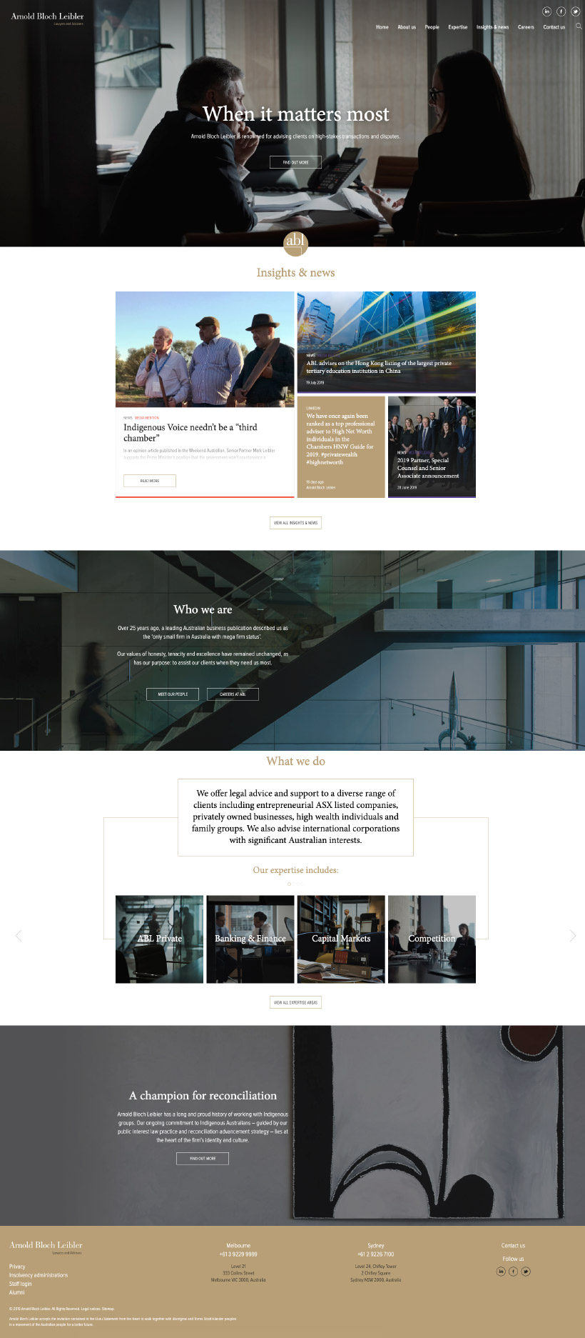 Brand refresh, photography direction and responsive site design for leading AU commercial law firm Arnold Bloch Leibler.